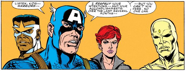 Well that’s settled, and I’m sure the New Warriors will never cause any problems again, nor will Cap ever have cause again to lecture young heroes about their lack of experience.