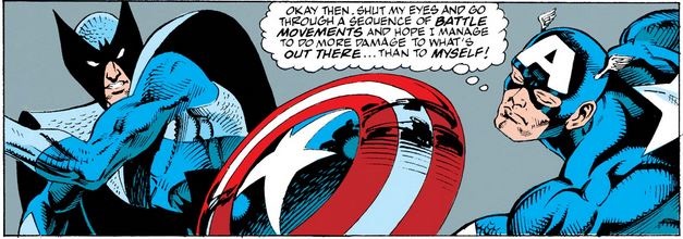 Despite getting a blast in the gut from Jack and becoming overwhelmed by Blackwing’s bats, Cap uses acrobatics to evade their further attacks…