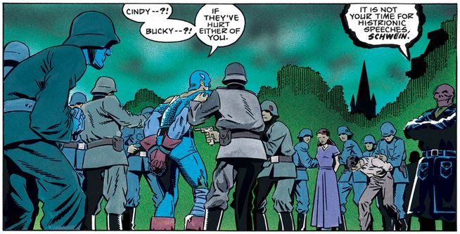 The Nazis take Cap and Bucky to a concentration camp, the horrors of which Bucky had only heard about but is now seeing with his own eyes—and horrors he instantly becomes determined to confront as soon as he has the chance.