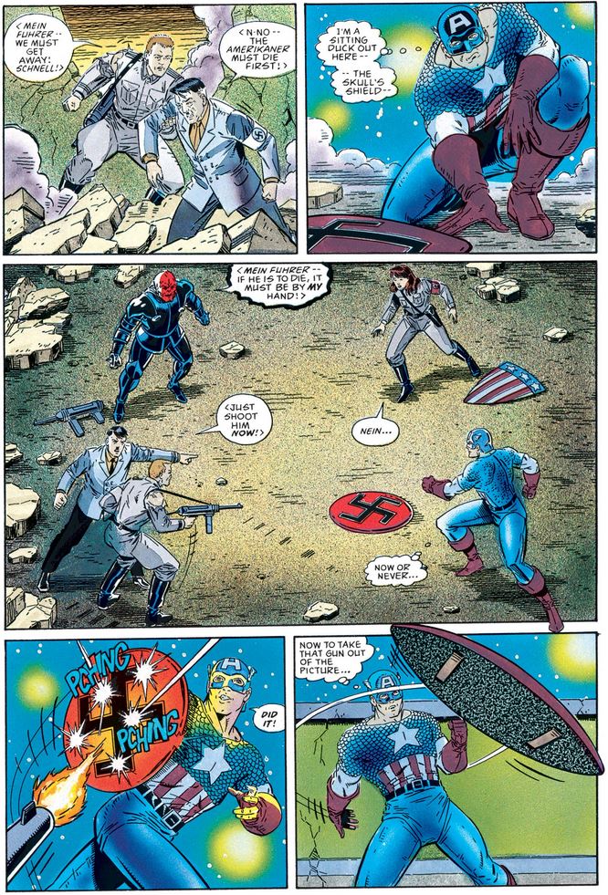 …but Cap is not finished yet, showing the perseverance and defiance he will become legendary for.