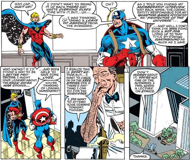…but Quasar has another matter to discuss, which Cap seems to understand, and the reasoning for which only confirms his assessment of the young hero’s character.