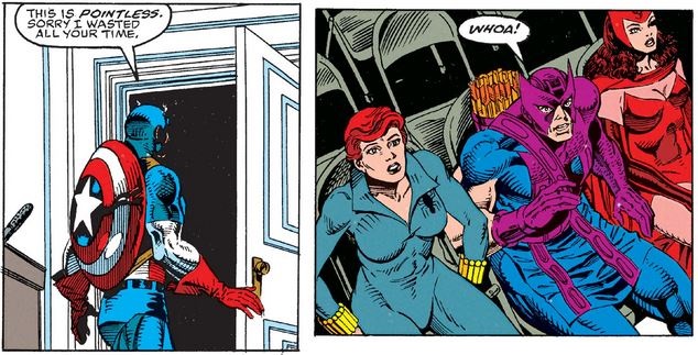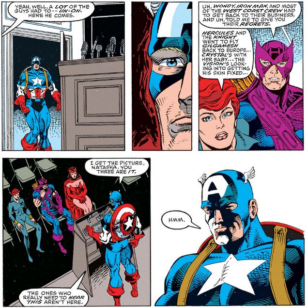 Great point about Natasha — I recently reread her early appearances in Daredevil and even Matt was concerned about her violence (before he became more violent himself in the Miller era). I’m curious too when she and Cap became so tight, to the point where she teases him and he makes her his deputy leader (and then successor). Maybe that time they were trapped together for most of a biweekly summer Avengers event (can’t remember which, those all run together)?