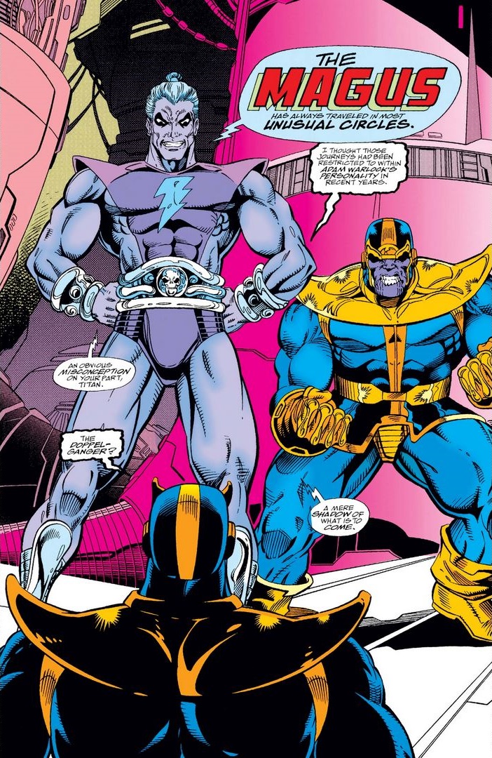 Infinity War #2, July 1992: Jim Starlin (writer), Ron Lim (pencils), Al Milgrom (inks), Ian Laughlin (colors), Jack Morelli (letters). (More details at Marvel Database.)