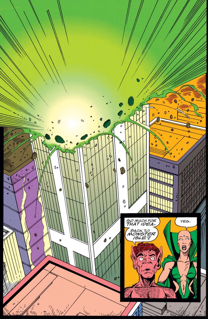 Moondragon and Pip (from Adam Warlock’s Infinity Watch, a group of beings entrusted with the Infinity Stones after “Infinity Gauntlet”) arrive just in time to see the big green blast.