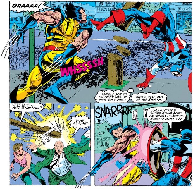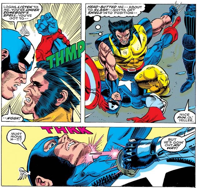After Wolverine jumps him, Cap realizes pretty quickly than the X-Man is even less calm and tranquil than usual.