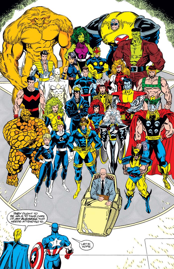 If Cap is uncomfortable with Xavier’s mind-reading, he doesn’t let on here—and he may even justify it by the presence of Thanos (and the presumed deceased Adam Warlock) among the others he doesn’t know (including two future Guardians of the Galaxy).