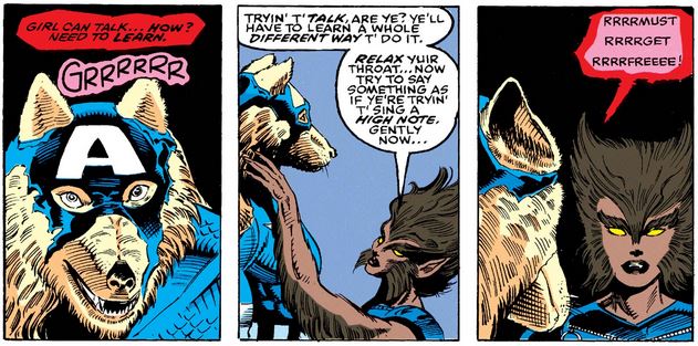 Back to Cap, who is fighting other werewolves when he’s jumped by another feral beast also brought to you by the letter W.