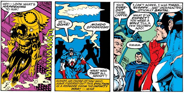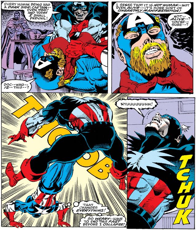 Before Nightshade can administer the antidote to Cap, though, a new player enters the game: an evil duplicate of Cap, courtesy of the Magus from Infinity War.
