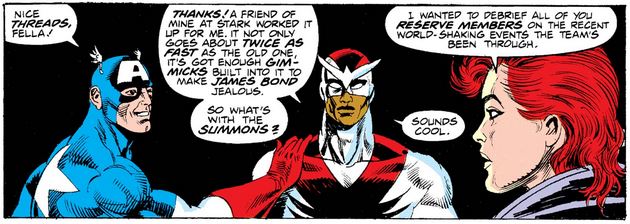 Turns out the person Sam sees is none other than Zack Moonhunter, flying an Avengers skycycle, and learns that he has applied to replace John Jameson as the Avengers’ pilot.