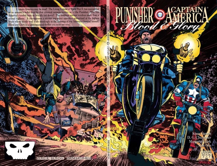Punisher – Captain America: Blood and Glory #2, November 1992: D.G. Chichester and Margaret Clark (writer), Klaus Janson (pencils and inks), Sam Otis (colors), John Workman (letters). (More details at Marvel Database.)