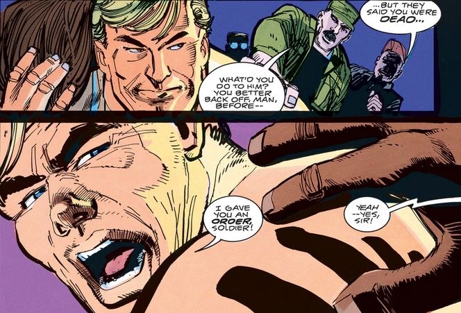 …and the general, alongside his partner, the U.S. attorney general, gives the same order Frank failed to complete at the end of the last issue (while Frank lies unconscious outside).
