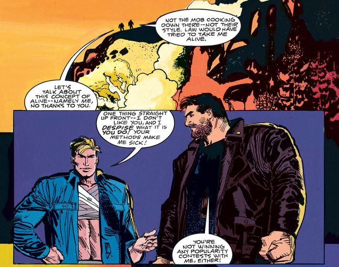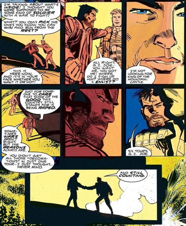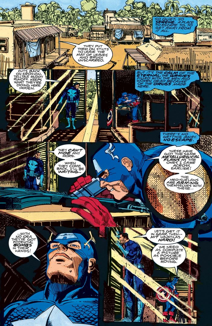 Once in Medisuela, Frank shows off his “Soldier of Fortune” starter pack, and Cap doesn’t even have to smirk in response.