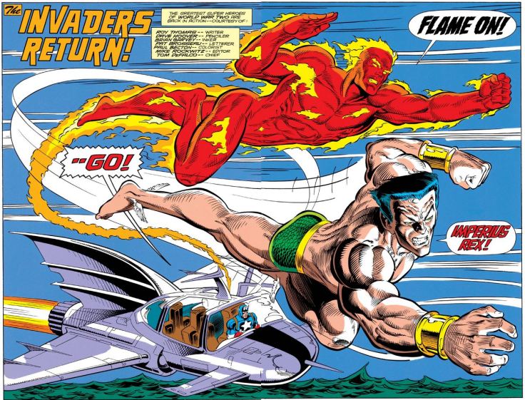 Soon, Namor’s ship dive-bombs the sub and the Invaders are thrown in the water, allowing the Nazis to escape while our hero rub their wounds and face their critics fans.