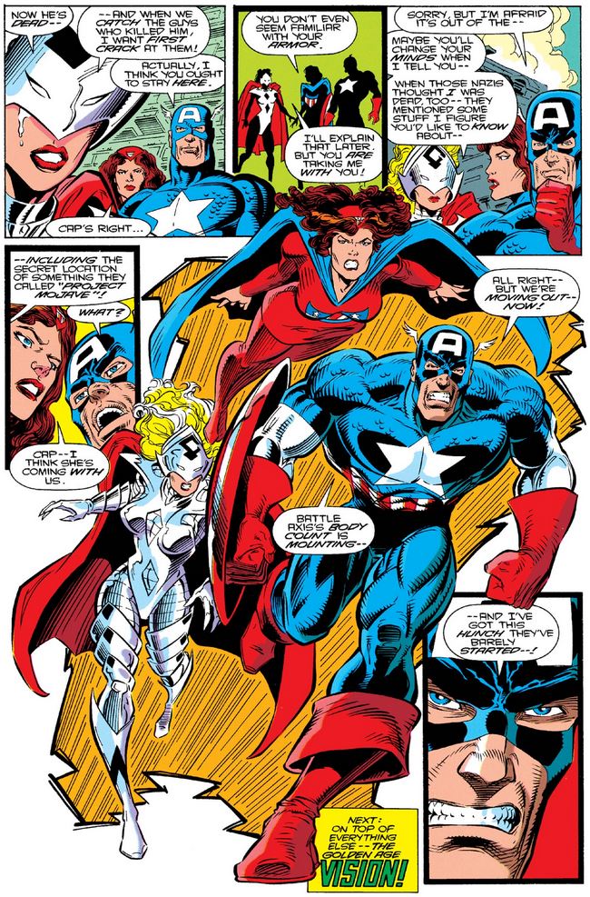 ALSO THESE MONTHS: Captain America #415 and Iron Man #292 (May 1993), Captain America Annual #12 (May 1993), Avengers #362-363 (May-June 1993), The Incredible Hulk #406 (June 1993), Captain America #416-417 and Mys-Tech Wars #4 (June-July 1993), Infinity Crusade #1-3 (June-August 1993), Avengers #364-365 (July-August 1993), Amazing Spider-Man #380, Spectacular Spider-Man #202-203, Spider-Man #37, and Web of Spider-Man #103 (July-August 1993), Captain America #418 and Silver Sable and the Wild Pack #15 (August 1993), and Secret Defenders #6 (August 1993)