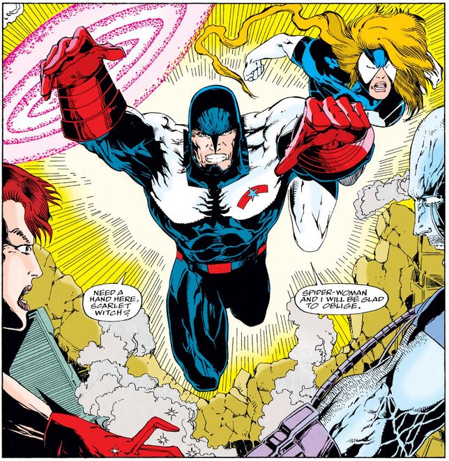If we zoom in on the right side of the image, we see the Scarlet Witch and USAgent are the most vocally upset about this—and if Cap is already this annoyed with Walker, you can imagine how it goes from here.