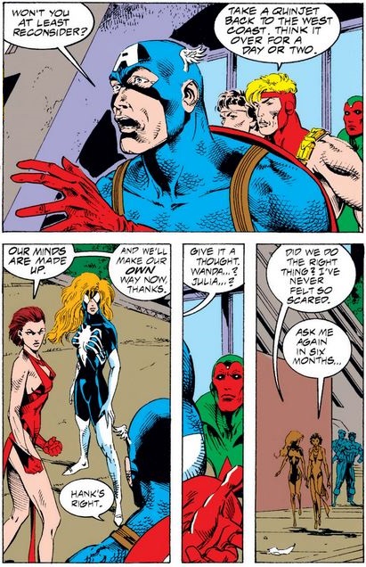 The final issue of West Coast Avengers (or Avengers West Coast, if you’re so inclined) sees the team calling it a day—not entirely voluntarily, though. And as you may have guessed based on the subtle hints on the cover, this does not sit well with some of its members, most of whom immediately make plans for a new venture (previewed below).