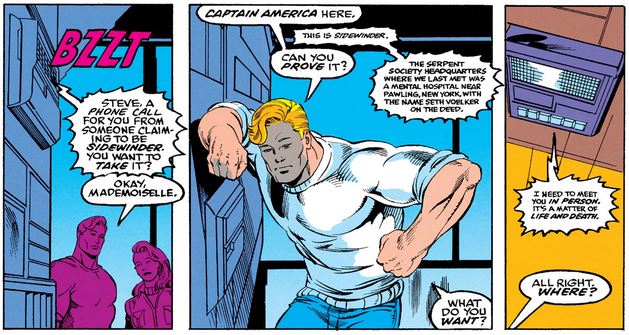 Once Cap makes it down to Fabian’s lab, Peggy alerts him of a call from the villain Sidewinder, who needs his help.