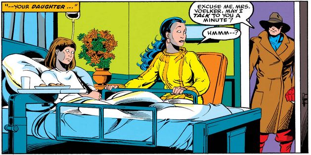 Somehow, Cap learns where Sidewinder’s daughter is and shows up at her hospital room… or, at least, someone does, who can be sure? <comic exaggerated wink>