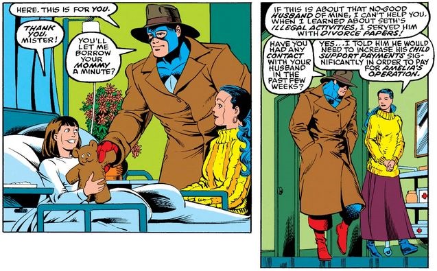 Sidewinder explains his problem to Cap, based on scenes involving his young daughter Amelia from earlier in the issue (not shown here).