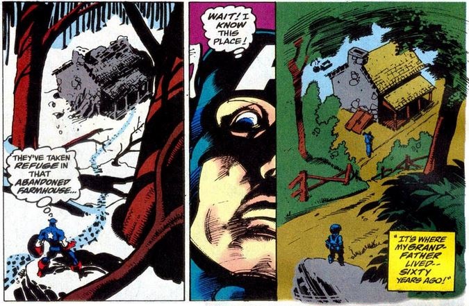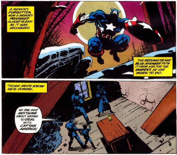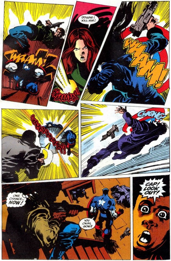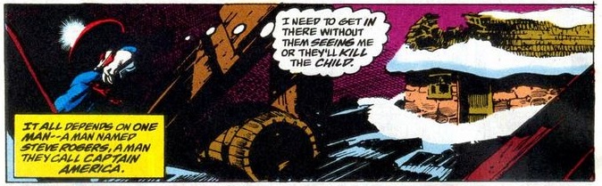 When Cap finally bursts in, he makes quick work of two of the kidnappers, but the third has a bead on him from above, and only the sharp eye and quick reaction of the abducted child saves the day…