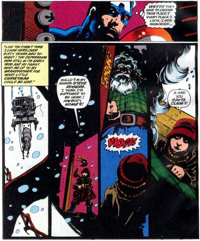 This Marvel stocking stuffer not only features a very poignant short story about Captain America by John Ostrander and Tom Mandrake—who collaborated on a fantastic Spectre run earlier in the decade, as well as much other amazing work by each—but also a beautiful George Pérez cover (as you see to the right or above).