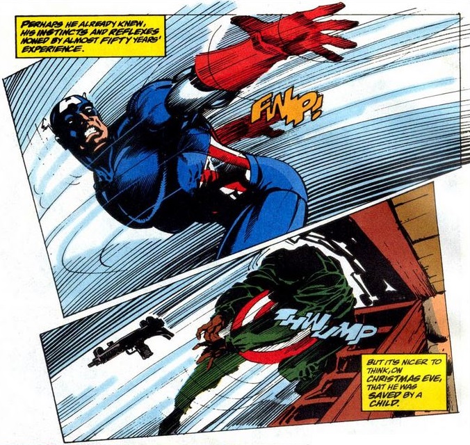 …although the narrator leaves open the possibility that Cap would have taken out the gunman anyway. (Spoilsport.)