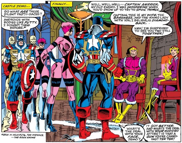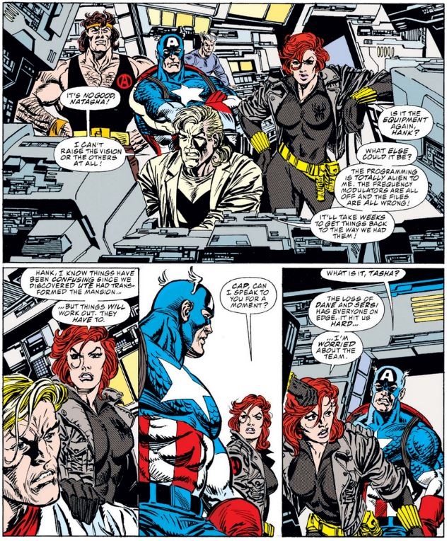 This continues in the next issue, but before we finish, let’s check in one of Cap’s increasingly infrequent and inactive appearances in Avengers with issue #378, in which the Black Widow asks her consigliere for his thoughts…