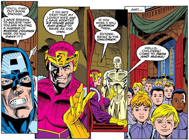 Cap dodges the questions about the contents of his holster and asks about the kids, whom Zemo is more than happy to claim as his own.