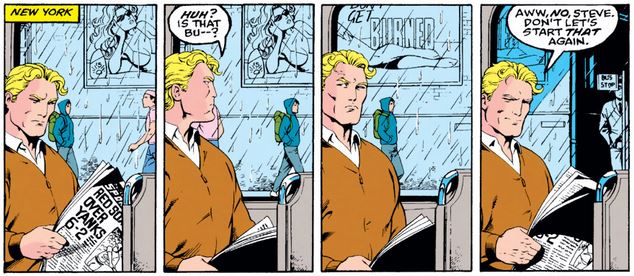 Finally, in The Incredible Hulk #421, Steve thinks he sees someone he used to know, but is self-aware enough to know it’s not him. (Well, probably not him—keep your hopes up, someday it might be.)