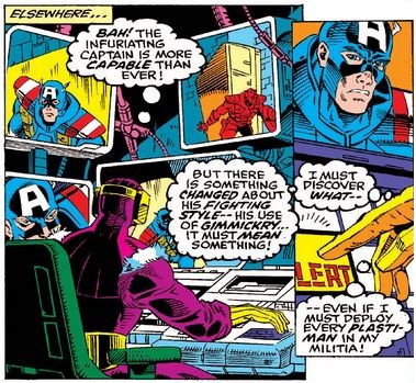 “Plasti-Man,” seriously? No imagination. (Cap calls them “Putty-Men” later and he wasn’t even trying.)