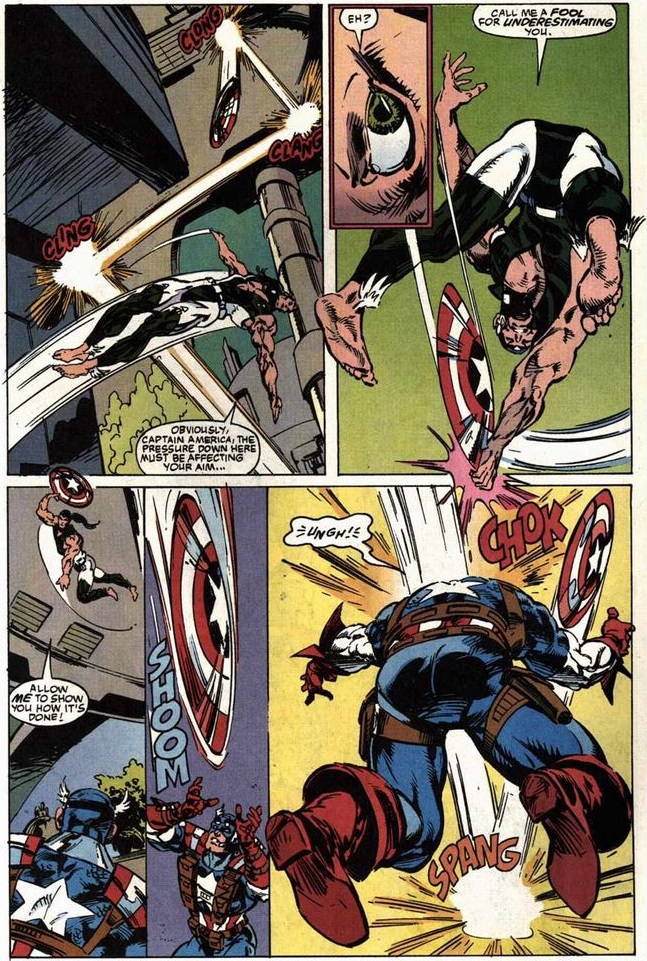 When Namor demurs, Cap gets to use a bit of his judo, using his enemy’s strength against him—which is especially useful when his own strength is failing (as seen in current issues of Captain America).