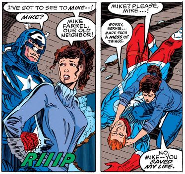 Dead Ringer turns his attention to Bernie and uses her as a hostage to force Cap to sacrifice himself—something he would do under normal circumstances, even if he didn’t believe he was very close to death as it is—but Mike comes through in the end to defend both Bernie and Cap.