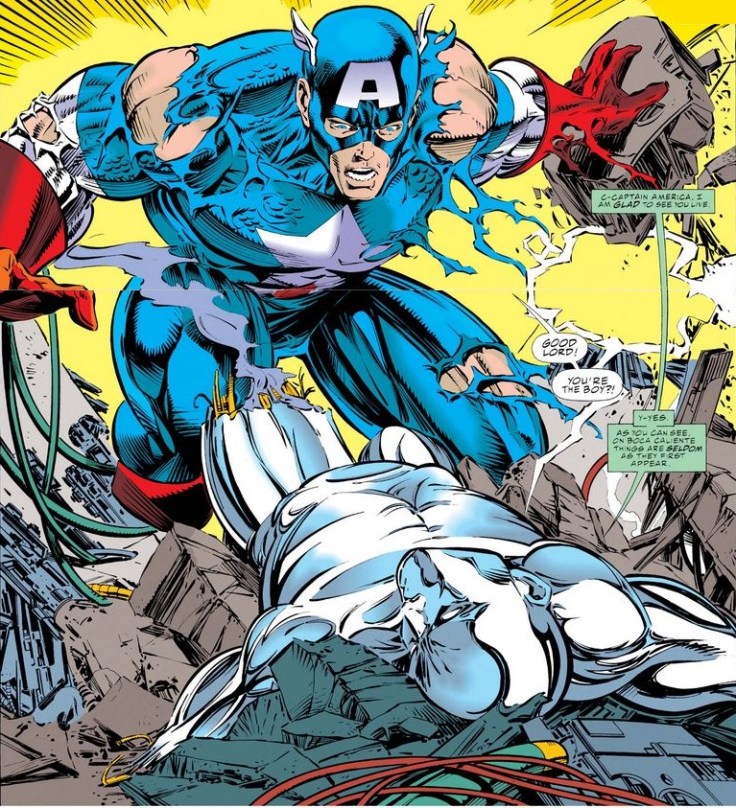 The Adaptoid sees Cap refuse to give up, despite his obvious agony, as long as he is needed, and realizes what he must do…