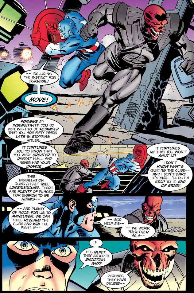 In the bottom right-hand corner above, Cap criticizes the Skull’s behavior under pressure…