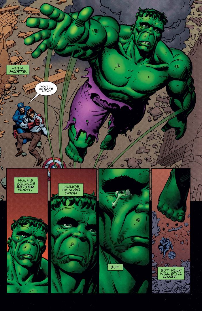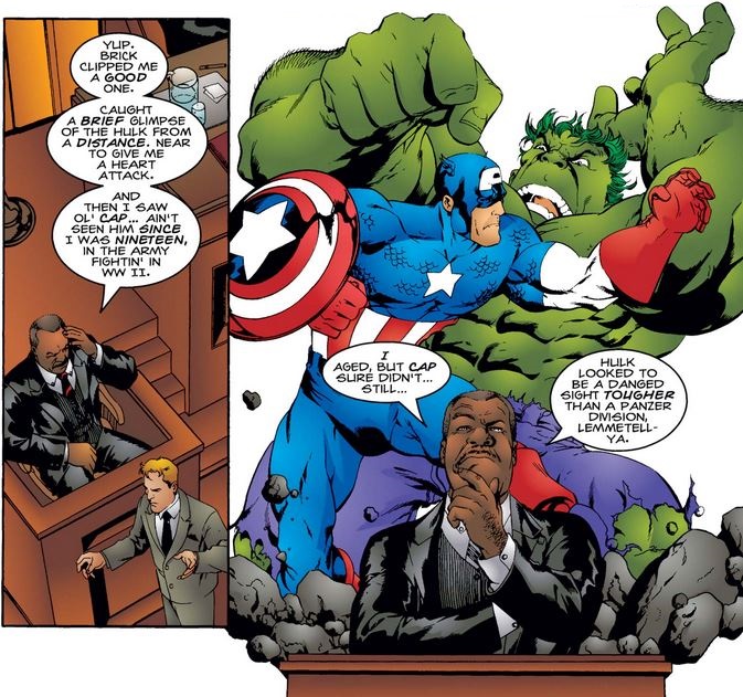 The Hulk goes on one final rampage before leaping away, leaving Cap to take care of Rick…