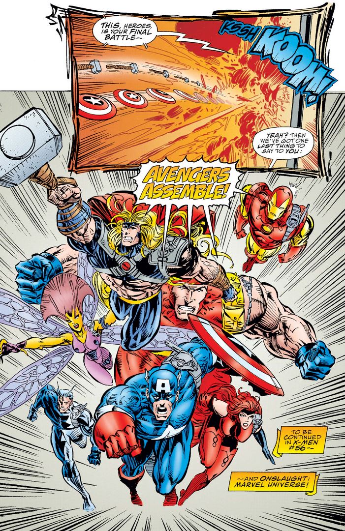 When Onslaught appears on a electronic sign to taunt the Avengers, they show him that they are back and they are coming for him…