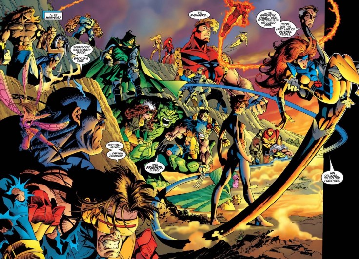 Why didn’t the X-Men join their fellow heroes, you ask? As Reed explains, their mutant nature would only make Onslaught stronger. (What about the Scarlet Witch, then? Magic or something—or maybe the first sign that she was never really a mutant? And don’t get me started on Namor, supposedly “the first mutant”…)