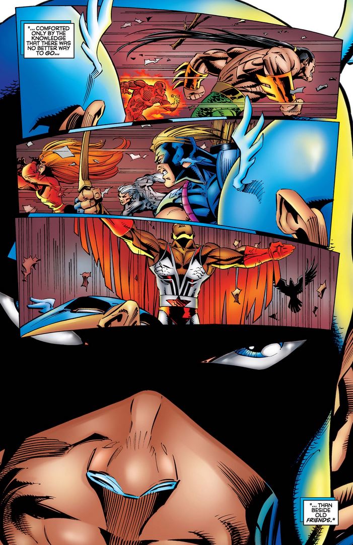 …and eventually most of the Avengers, including the Falcon, Namor, and Captain America, who issues the team’s famous battle cry for possibly the last time.