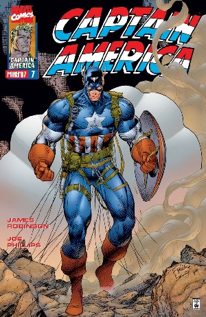 Captain America (vol. 2) #7, May 1997: James Robinson (writer), Joe Phillips and Travis Charest (pencils), Homage Studios (inks), Wildstorm FX (colors), Richard Starkings and Comicraft (letters). (More details at Marvel Database.)