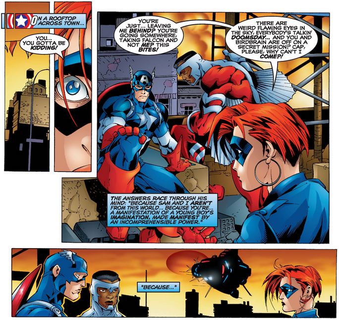 In the final issue, after Cap finds his two partners, he and Sam say goodbye to Rikki. Cap is torn over whether to tell her the truth about her world and her existence…