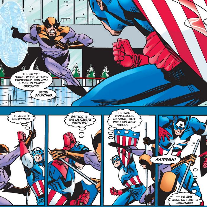 Cap warns Clint about the ice in the Rockefeller Center ice skating rink, which Batroc takes advantage of, until Cap returns the favor from the beginning of the issue.