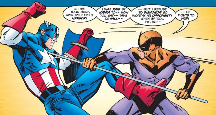 Once he knows this, Cap bows out, having better things to do with his time. While his admirers are left wondering what’s going on, Batroc is more assertive in his objection…