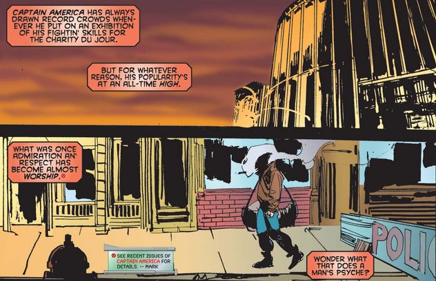 …but he quickly reconsiders, realizing that he’s only seeing the star and the shield and not the complex person underneath, who is undergoing his own burdens and struggles (as longtime readers of this blog know well). And just to make sure, Cap confirms it.