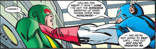 This random Hydra flunky claims ignorance, acknowledging only that he is being targeted by the leader of a small Hydra faction, the Sensational Hydra (who reveals himself as a disguised SHIELD agent after Cap and Thor leave).