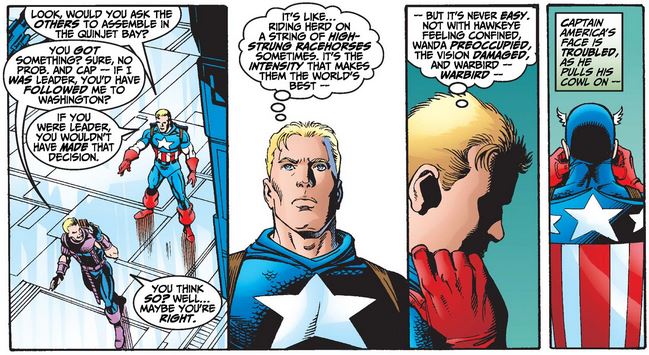 Cap continues to demonstrate his faith in Clint, not by pledging to go along with his bad decision, but remaining confident he would have made a better one. But that confidence does not extend in his internal doubts about other members of the team.