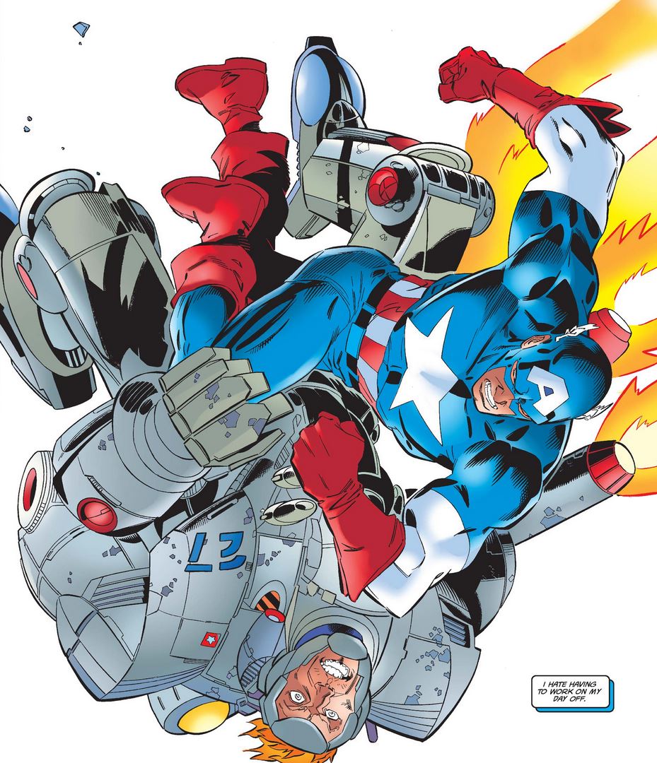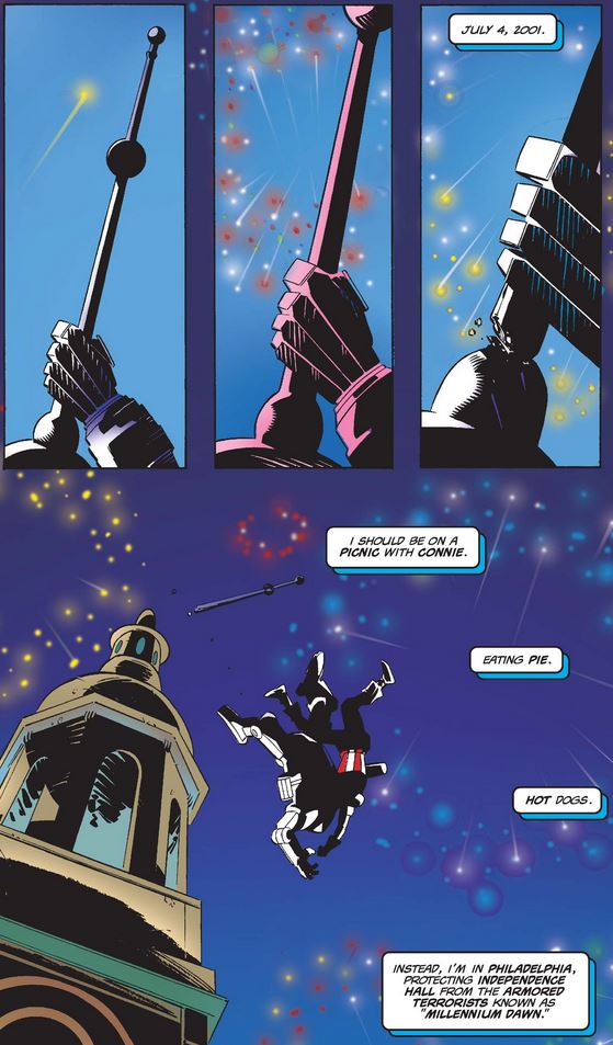 This story curiously starts almost exactly three years into the future from the comic’s July 1, 1998, release date, at which time Cap is apparently seeing a woman named Connie when he’s not at work protecting democracy.