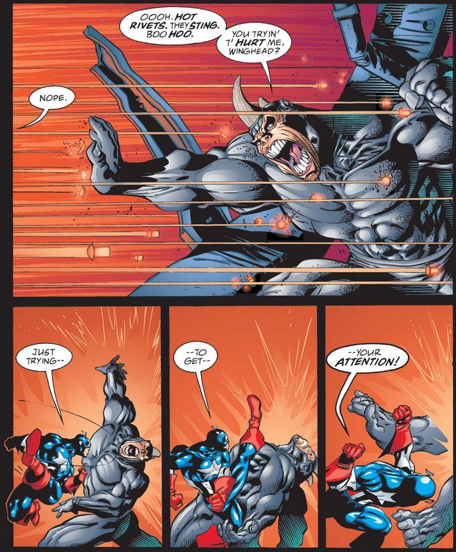 The Rhino does, however, provide Cap a chance to see how repellent his new shield is.