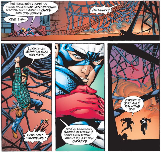 Captain America (vol. 3) #9, September 1998: Mark Waid (writer), Andy Kubert (pencils), Jesse Delperdang (inks), Chris Sotomayer (colors), Todd Klein (letters). (More details at Marvel Database.)