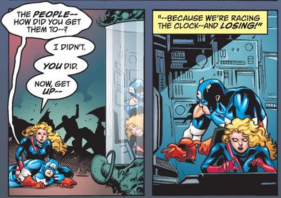 Meanwhile, in the real world, Sharon realizes that Cap is headed toward a nuclear missile silo and fears the worst. She tries to bring his plane down, but when he fires back, she has no choice but to shoot him down, and his plane explodes, surprising Nightmare, Cap, and Sharon alike.