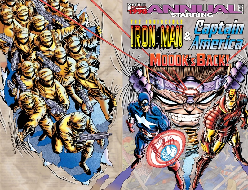 Iron Man/Captain America Annual 1998: Kurt Busiek and Roger Stern (plot), Mark Waid (script), Patrick Zircher (pencils), Randy Emberlin (inks), Tom Smith (colors), Richards Starkings and Comicraft (letters). (More details at Marvel Database.)
